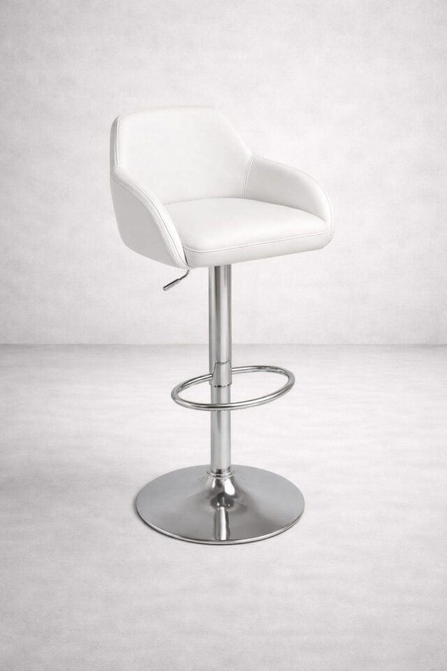 Amortisörlü beyaz deri bistro sandalye, modern tasarımı ve ayarlanabilir yapısıyla organizasyonlarınıza konfor ve şıklığı bir arada sunar.